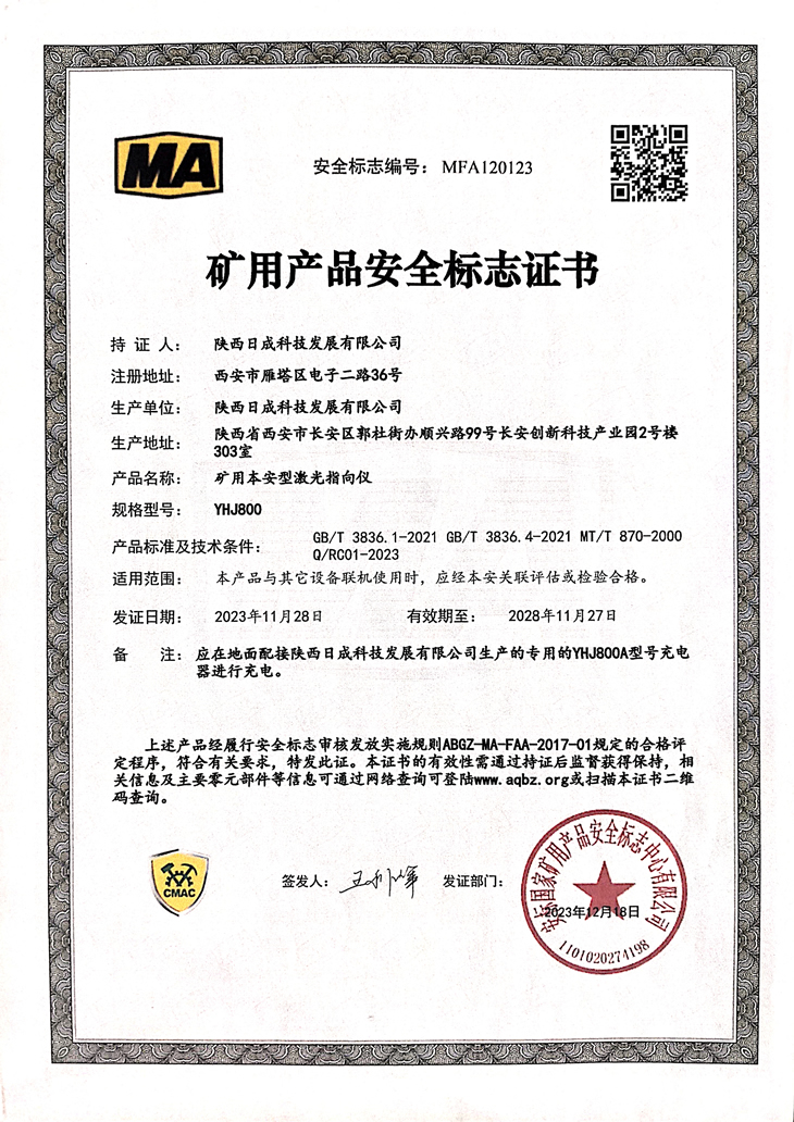 礦用產品安全標志證書