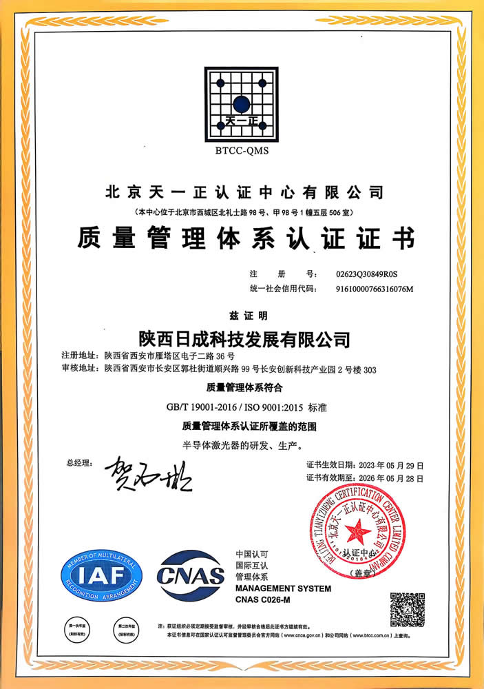 質量管理體系認證證書