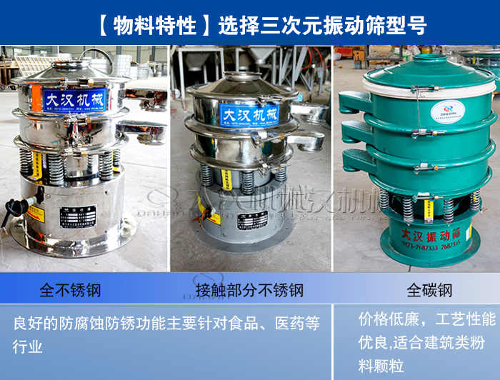 您可根據(jù)物料特性主要是決定您是適用哪種材質(zhì)的三次元振動篩